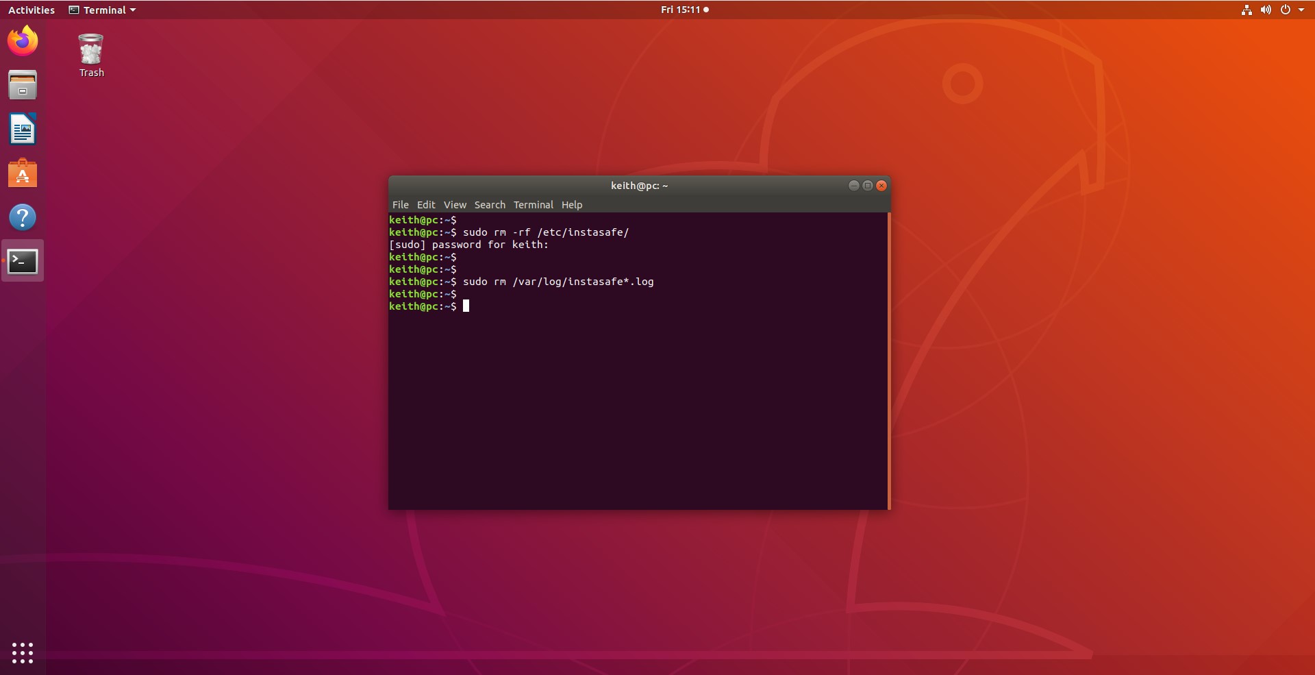 Run the command 'sudo rm -rf /etc/instasafe/'