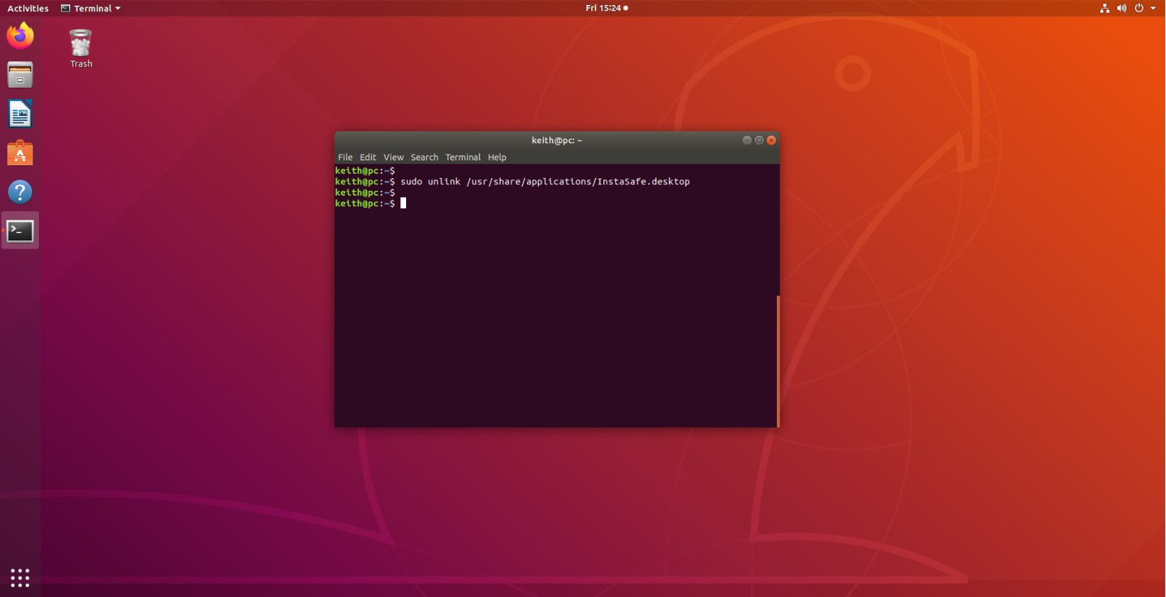 Run the command 'sudo unlink /usr/share/applications/InstaSafe.desktop'